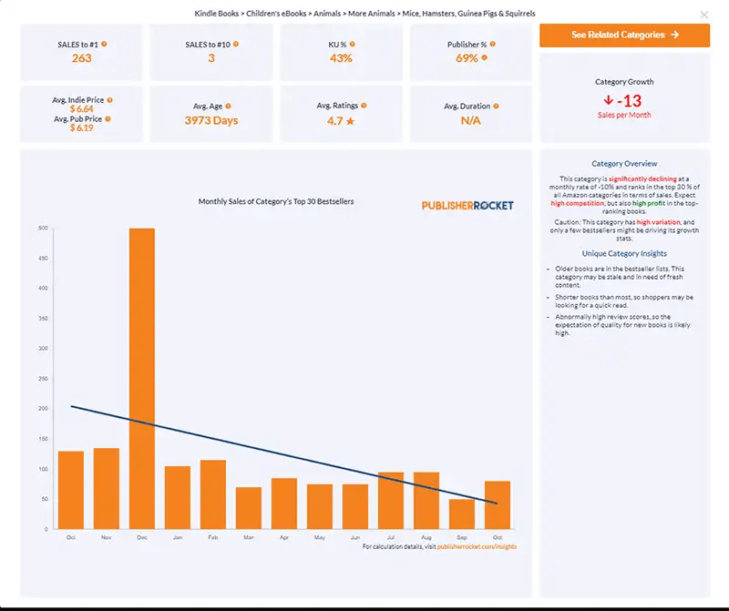 It’s always tempting to aim high, isn’t it? We’d all love to be the #1 seller in a category like Books > Children’s eBooks > More Animals > Mice, Hamsters, Guinea Pigs & Squirrels with those 263 ebook daily sales.